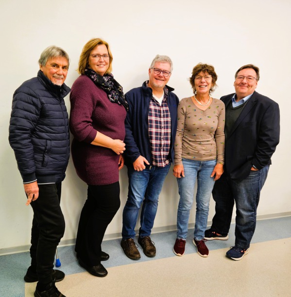 Die Spitzenkandidat:innen für die Stadtverordnetenversammlung. Vlnr.: Peter Kluin (Platz 3), Telja Wolters (Platz 2), Frank Laurent (Platz 1), Silvia Weber (Platz 4) und Richard Kilian (Platz 5)